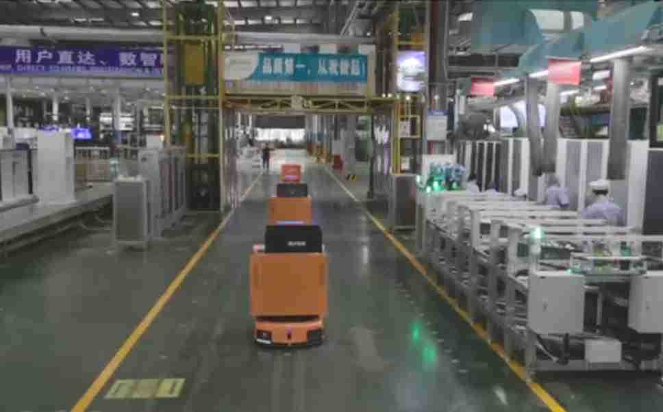 为车载冰箱物流配送打造的智能解决方案,,,,包含产中物流通过潜伏举升AMR搬运至线边,,,,产后成品物流智能仓储,,流程包含产中物流智能齐套入库,,,线边安灯叫料AMR智能配送至线边,,,,成品入库、、、出库,,,通过无人堆高车机器人,,,智能仓储管理替代人工作业管理,,,,实现更高存储、、、更高效率、、、更具柔性化的解决方案。。。